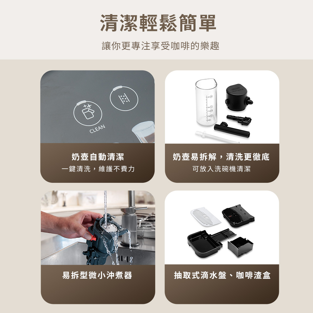 - 可拆式沖煮組:清潔保養方便