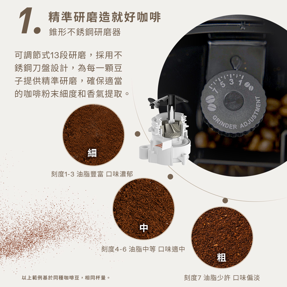 - 13 段研磨刻度:依喜好調整風味濃淡